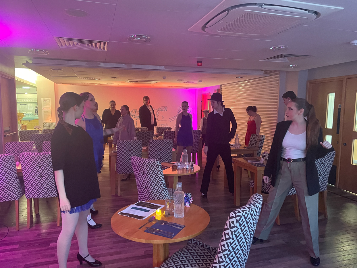 For our Performing Arts students, the evening offered the opportunity to work beyond the traditional stage environment and perform within an interactive dining space. They engaged directly with guests, performing between tables and creating an authentic 1920s atmosphere while remaining mindful of the operational flow of the dinner service. This experience broadened their understanding of performance in non-traditional settings and provided valuable insight into alternative career pathways within the industry.