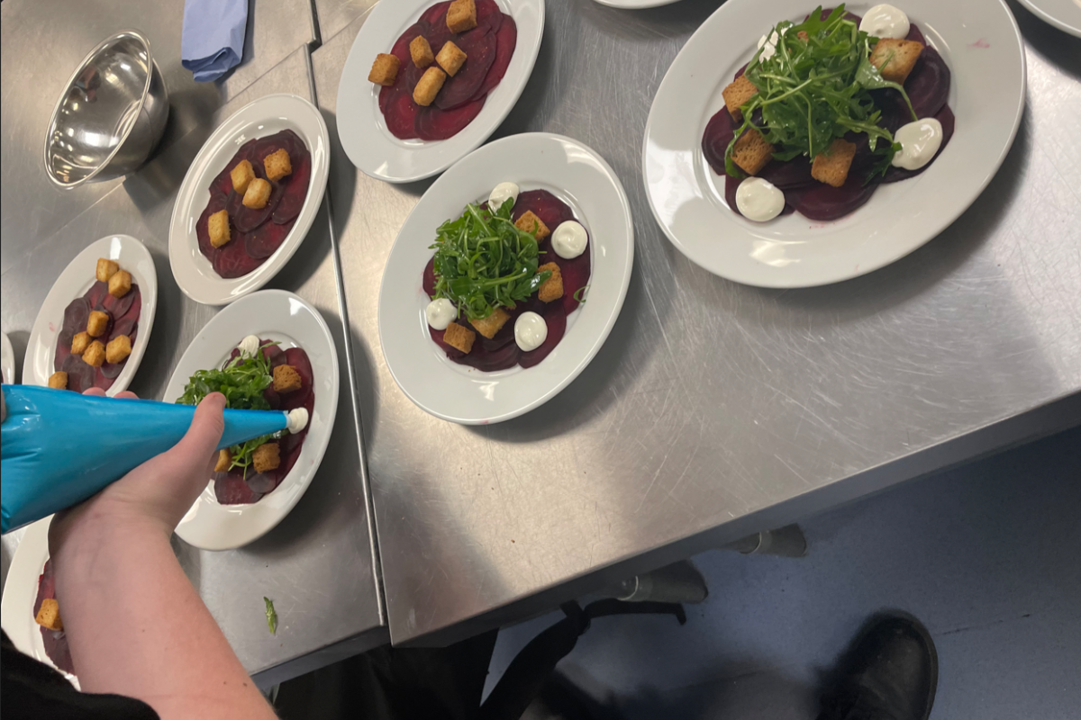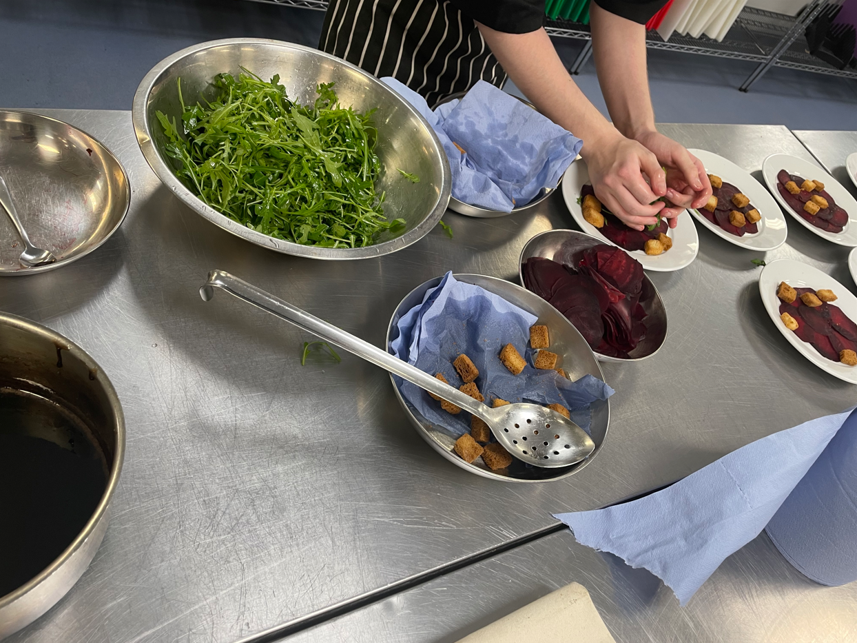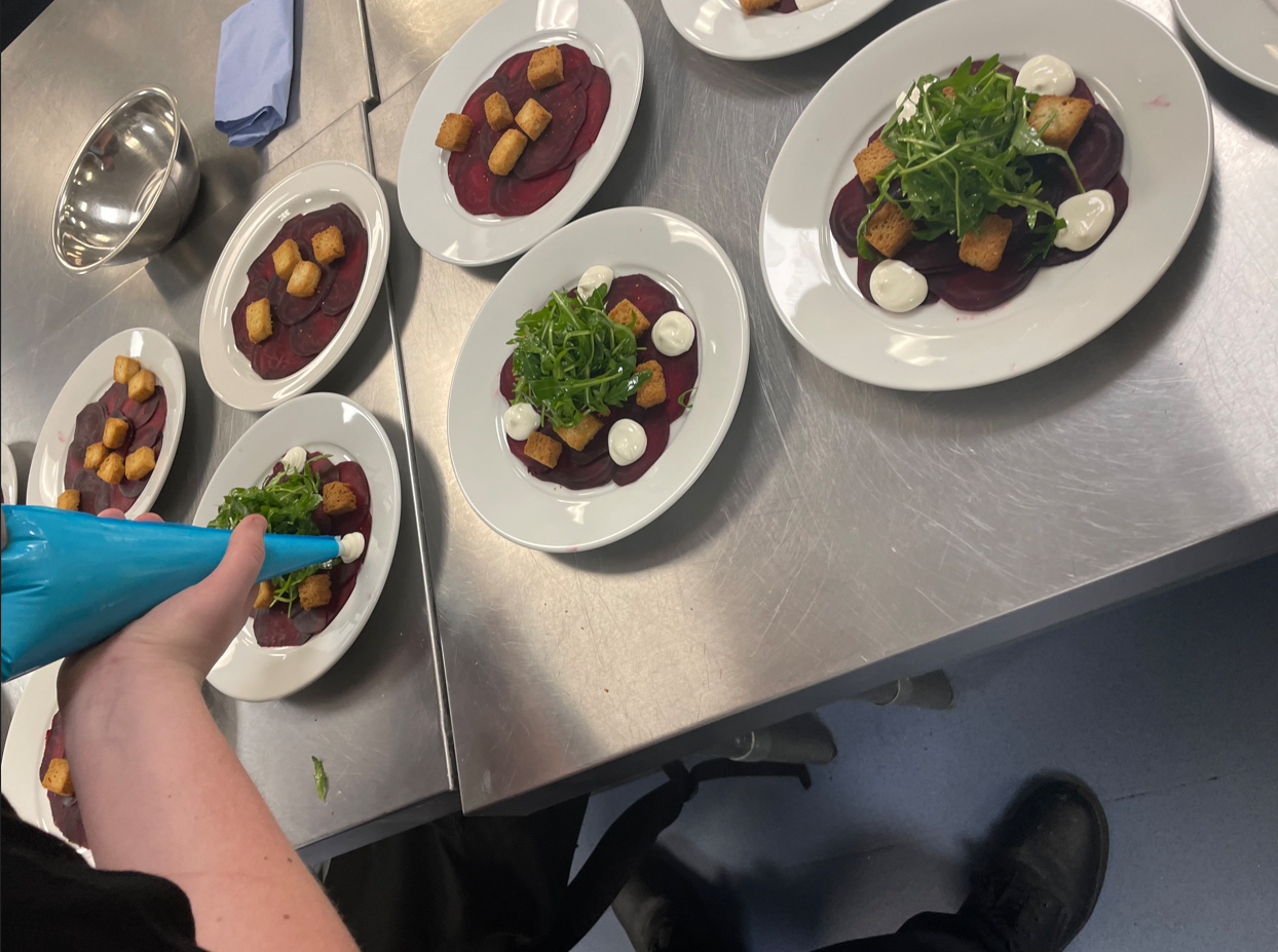 Our Hospitality and Catering students designed and prepared an elaborate three-course menu, offering both meat and vegetarian options to accommodate a variety of dietary requirements. While students regularly host weekly dinner services to gain invaluable hands-on experience with real customers, this event presented a new challenge by delivering a fully immersive themed evening in partnership with other departments. This required adaptability, teamwork, and resilience, enabling students to develop their problem-solving skills and confidence in a dynamic, live-event setting.