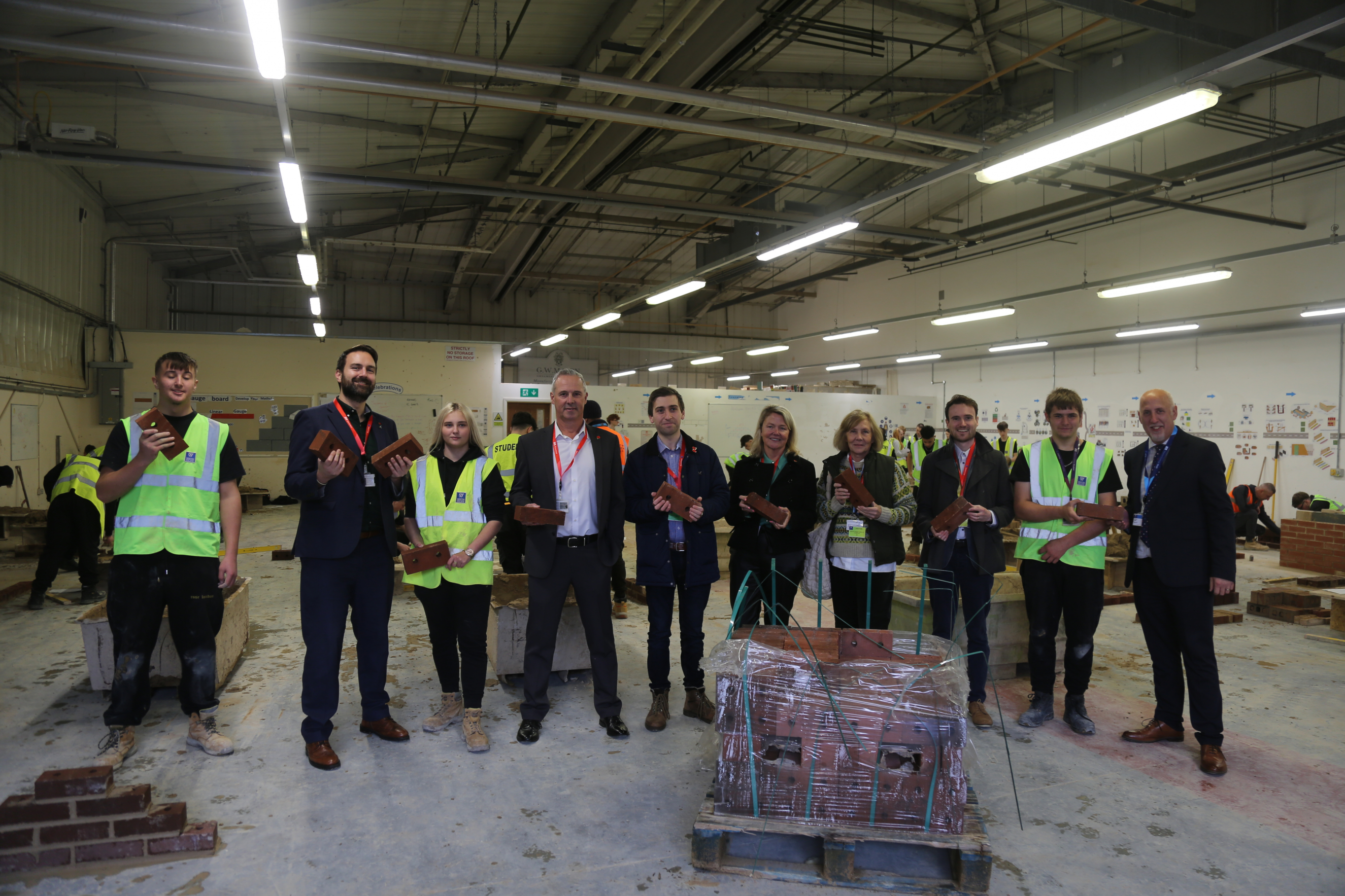 In honour of this kind donation, three members of the Persimmon Homes team joined us at the South West Skills Campus, along with Dan Aldridge, the Labour MP for Weston-Super-Mare, and three other Councillors. They got the chance to meet our Bricklaying students, chat with them, and see how their brick donation was being used within the course.